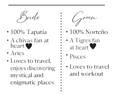 On a summer afternoon, two people from different cities, different lives; she had returned to Mexico two months ago after seven long years on the European continent, he completely unaware of her existence. The universe and destiny as the main actors managed to make a "MATCH" where from the first message their lives were already destined to be together. Without imagining that on 27th of August 2022, in a magical town called Mazamitla, it would be the place where the first "Yes" would be given and the beginning of this incredible love story.